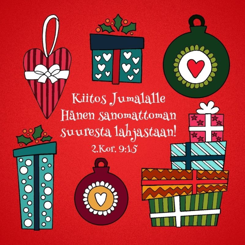 Kiitos Jumalalle Hänen sanomattoman suuresta lahjastaan! 2.Kor. 9:15