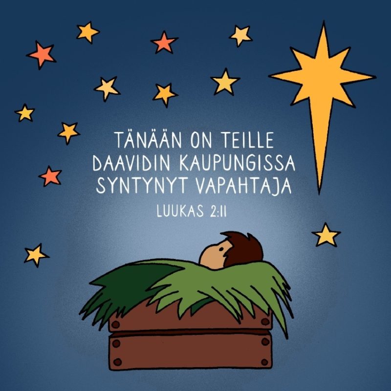 Tänään on teille Daavidin kaupungissa syntynyt Vapahtaja. Luukas 2:11