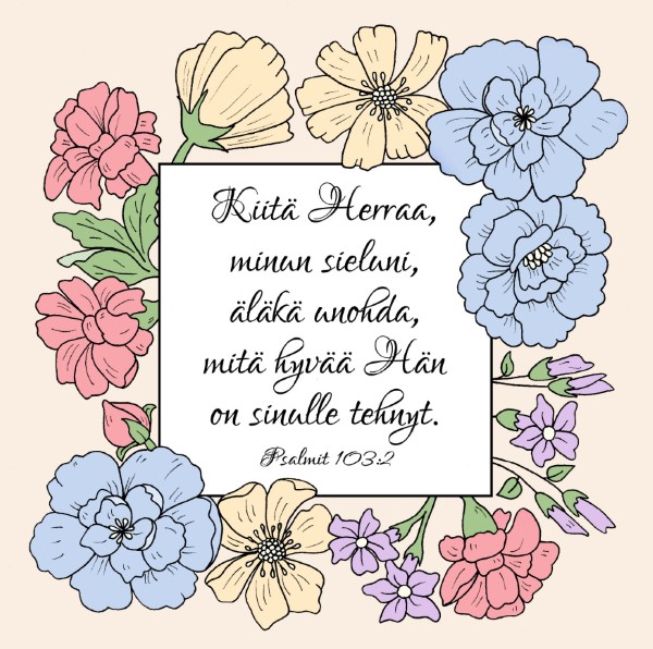 Kiitä Herraa, minun sieluni, äläkä unhota, mitä hyvää hän on sinulle tehnyt. Psalmit 103:2