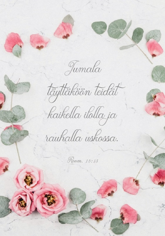 Jumala täyttäköön teidät kaikella ilolla ja rauhalla uskossa.