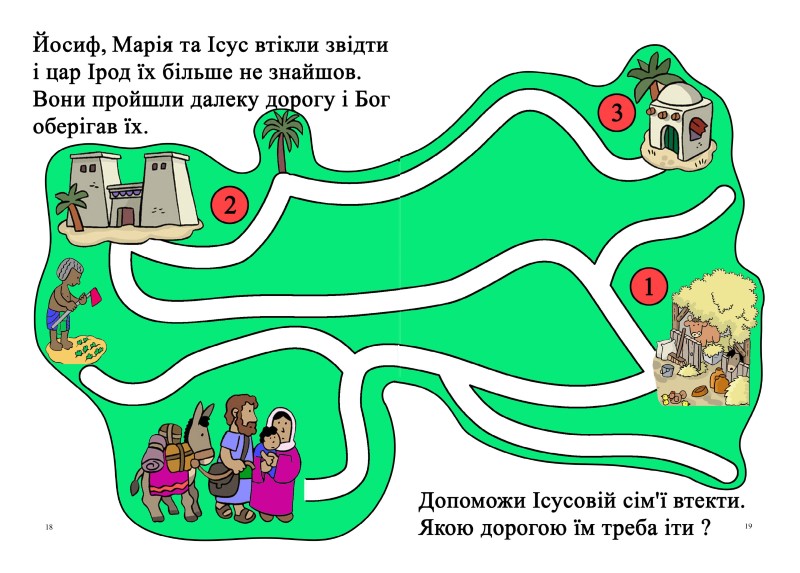 Jeesuksen syntymä, itämaan tietäjät ja Marian, Joosefin ja Jeesuksen pako Egyptiin. Myös tehtäviä ja väritettävää!