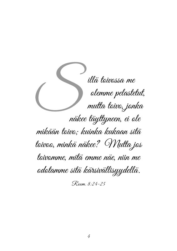 Tähän vihkoon on valittu parhaita raamatunlauseita toivosta.